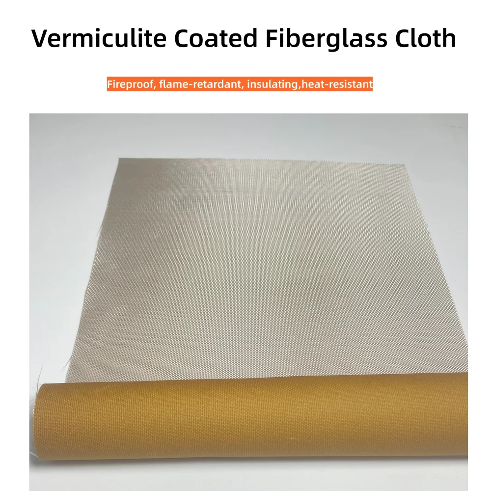 High Temperature Vermiculite Coated Fiberglass Cloth - Fireproof Heat Resistant Fiberglass Fabric with Vermiculite Surface